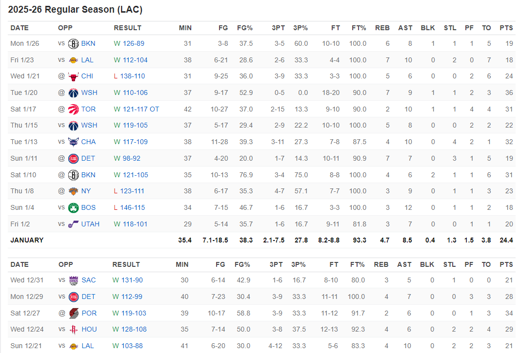 快船狂胜篮网后最近的18场比赛赢下了其中15场,这场胜利后快船21胜24负,快船距离50%的胜率只差3场,哈登仅打了三节就打卡下班拿到19+8+6+1+1的全面数据,但问题还是效率不佳,命中率仅37.5%,正负值+22。